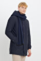 Standart Fit Normal Kesim Kapüşon Çıkmalı Dik Yaka Çıtçıtlı Yan Cepli Lacivert Kaban