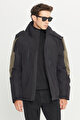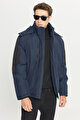Standart Fit Normal Kesim Kapüşonlu Dik Yaka Yan Cepli Casual Lacivert Mont