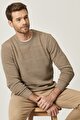 Standart Fit Normal Kesim Pamuklu Bisiklet Yaka Muline Desenli Bej-Gri Kazak