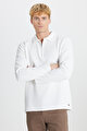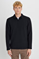 Standart Fit Normal Kesim Polo Yaka Jakarlı Esnek Uzun Kollu Siyah Uzun Kollu Tişört