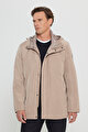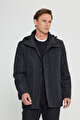 Standart Fit Normal Kesim Rüzgar Geçirmez Kapüşonlu Dik Yaka Siyah Trençkot
