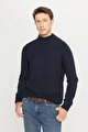 Standart Fit Normal Kesim Yarım Balıkçı Yaka Jakarlı Triko Lacivert Kazak