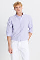 Tailored Slim Fit Dar Kesim Düğmeli Yaka Gofre Desenli Pembe Gömlek
