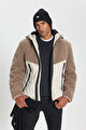 Termometreli Standart Fit Normal Kesim Kapüşon Yaka Fermuarlı Yan Cepli Bej Mont