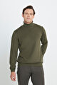 Tüylenme Yapmayan Anti Pilling Özellikli Standart Fit Tam Balıkçı Yaka Haki Kazak