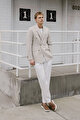 Yumuşak Dokulu Slim Fit Dar Kesim Beli Bağlamalı Yan Cepli Diagonal Desenli Ekru Pantolon