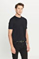 Yumuşak Dokulu Standart Fit Normal Kesim Bisiklet Yaka Triko Siyah Tişört