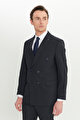 Yün Slim Fit Dar Kesim Kırlangıç Yaka Kapak Cepli Lacivert Takım Elbise
