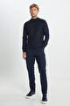 Yünlü Flanel Slim Fit Dar Kesim Beli Gizli Lastikli Yan Cep Klasik Siyah Pantolon