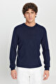 Yünlü Sıcak Tutan Standart Fit Normal Kesim Bisiklet Yaka Triko Lacivert Kazak
