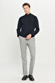 Yünlü Slim Fit Dar Kesim Beli Gizli Lastikli Yan Cepli Diagonal Desenli Klasik Gri Pantolon