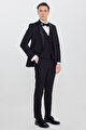 Yünlü Slim Fit Dar Kesim Çıkma Şal Yaka Beli Gizli Lastikli Kapak Cepli Yelekli Siyah Smokin Takım