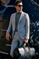 Yünlü Slim Fit Dar Kesim Kırlangıç Yaka Esnek Bel Gri Takım Elbise