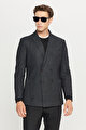Yünlü Slim Fit Dar Kesim Kırlangıç Yaka Torba Cepli Kruvaze Siyah Ceket