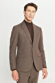 Yünlü Slim Fit Dar Kesim Mono Yaka Kapak Cepli Desenli Esnek Kahverengi Takım Elbise