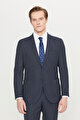 Yünlü Slim Fit Dar Kesim Mono Yaka Torba Cepli Desenli Esnek Lacivert Takım Elbise