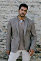 Yünlü Slim Fit Dar Kesim Mono Yaka Torba Cepli Esnek Bej Ceket