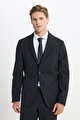 Yünlü Slim Fit Dar Kesim Mono Yaka Torba Cepli Esnek Siyah Takım Elbise