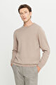 Yünlü Standart Fit Normal Kesim Bisiklet Yaka Triko Basic Bej Melanj Kazak