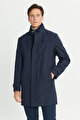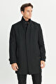 Yünlü Standart Fit Normal Kesim Dik Yaka Yan Cepli Siyah Kaban