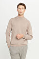 Yünlü Standart Fit Normal Kesim Yarım Balıkçı Yaka Triko Bej Melanj Kazak