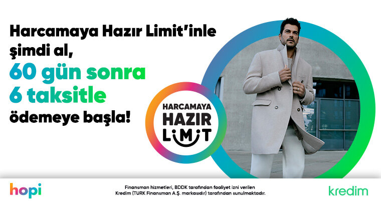 Hopi Harcamaya Hazır Limit ile Şimdi Al, 60 gün sonra 6 Taksitle Ödemeye Başla!