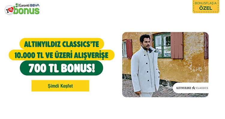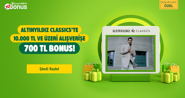 • Altınyıldız Classics’te tek seferde gerçekleştirilen, peşin veya taksitli 10.000 TL ve üzeri harcamaya 700 TL bonus verilecektir.